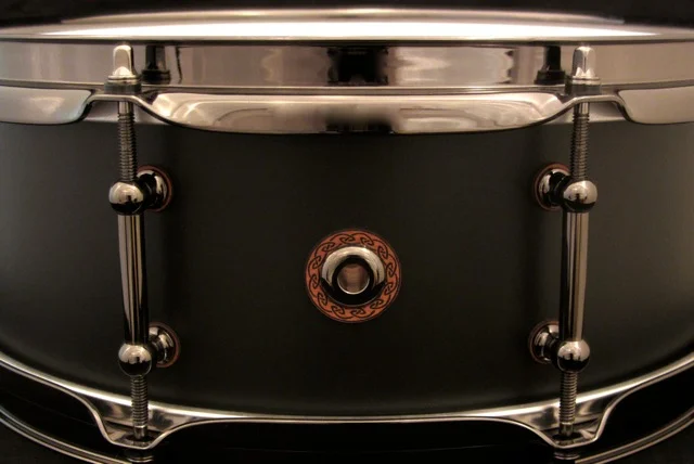 Black Out Birch Series Snares showcase our new vegan leather badges, lug gaskets, and accented air vent grommets.